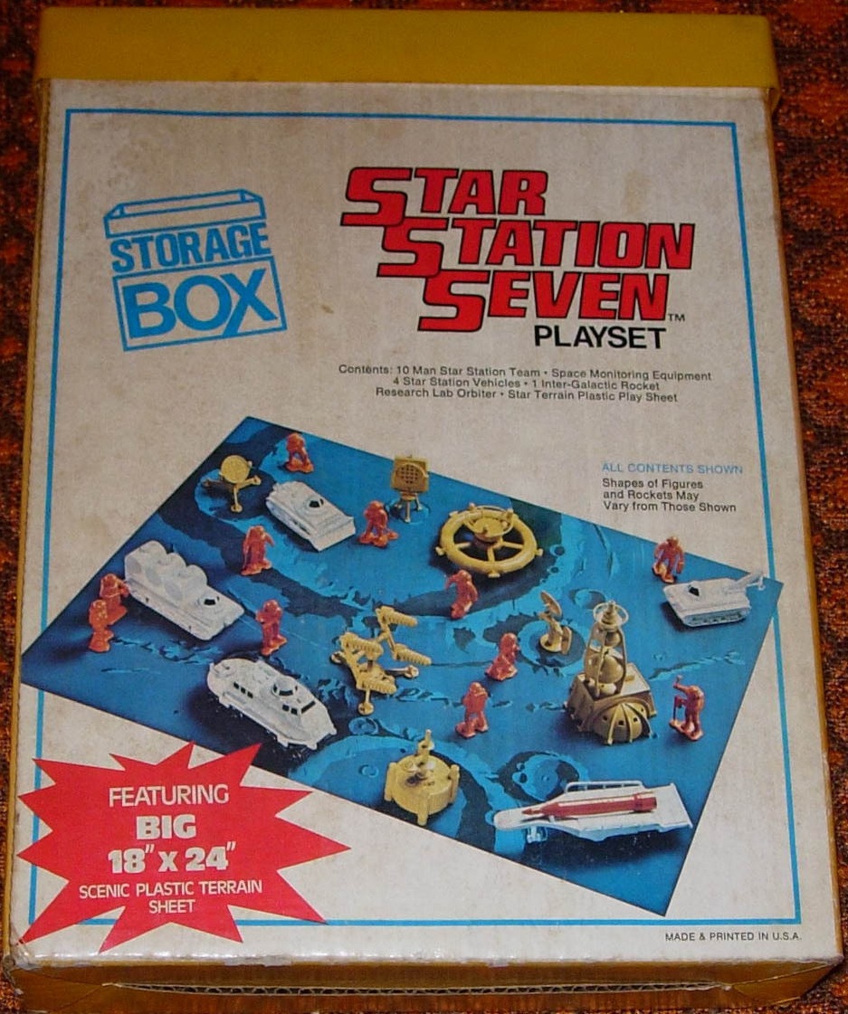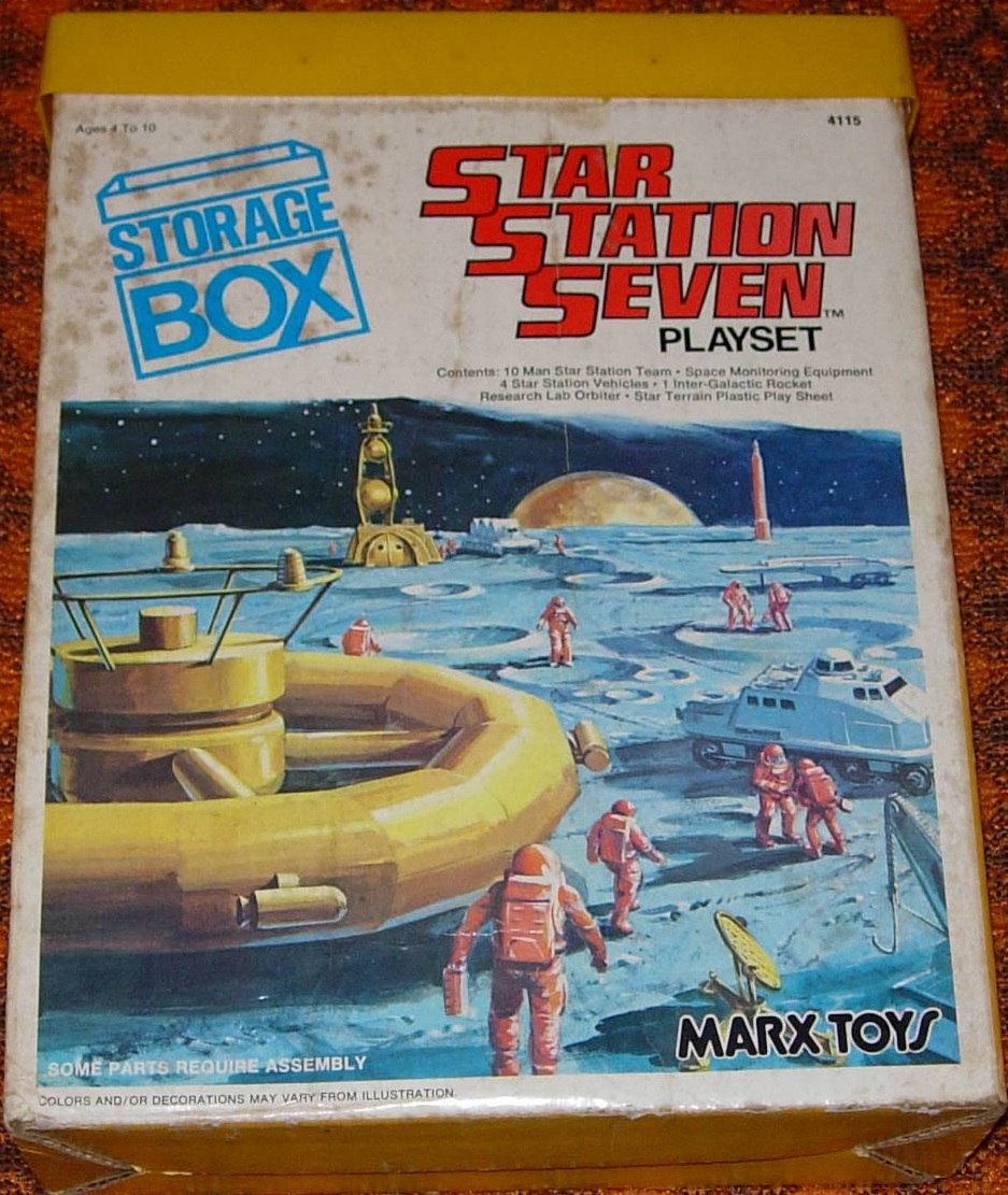 Last Marx toys playset I bought before they went out of business. The quality control was bad, I was missing some of the wheels for the Prime Mover and the quad antenna was damaged. I still got the stuff that came inside, except maybe the playmat. The box died of old age.