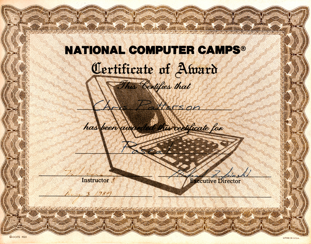 Dimmerswitch, the lucky recipient of this awesome certificate, says it was awarded in 1981. Pascal was serious business! I couldn’t even hack BASIC.