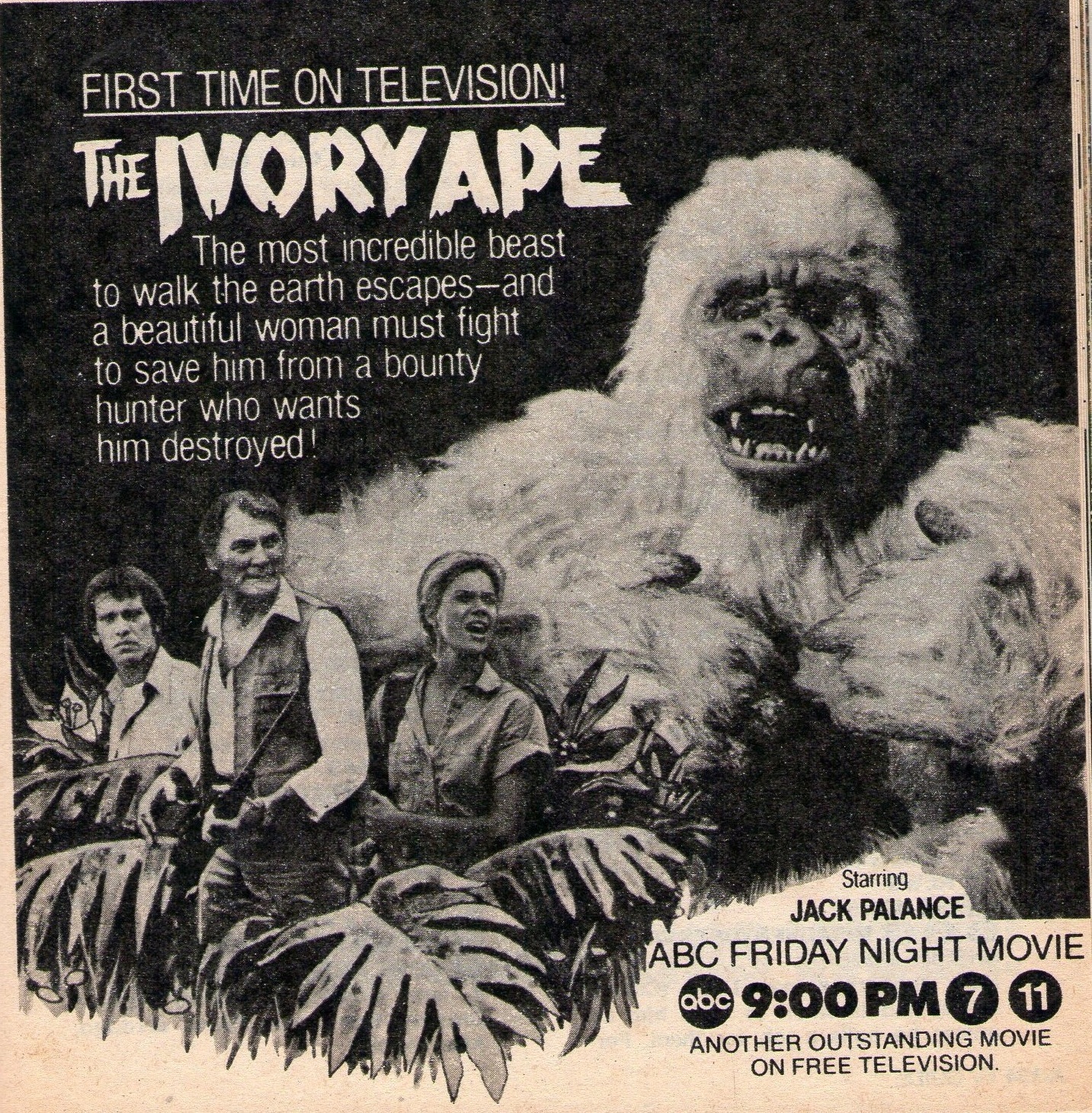 The Ivory Ape premiered on April 18, 1980. Jack Palance plays the big-game hunter hired to dispose of the escaped ape.
