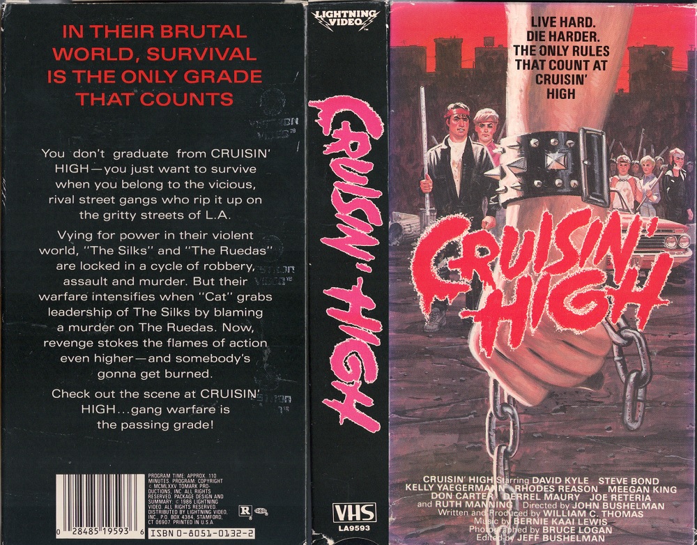 “In their brutal world, survival is the only grade that counts.” “Check out the scene at CRUISIN’ HIGH… gang warfare is the passing grade!” A little tear of appreciation just formed in the corner of my eye.