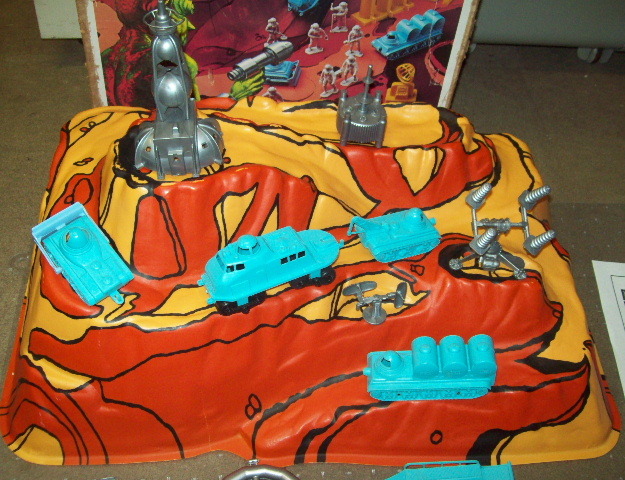 The idea of the set and the box art are way cooler than the finished product. It’s just a repackaging of the far superior Operation Moon Base. Pieces/molds used in Martian Landing were used in Marx’s later space-themed sets, including Star Station Seven and Galaxy Command.