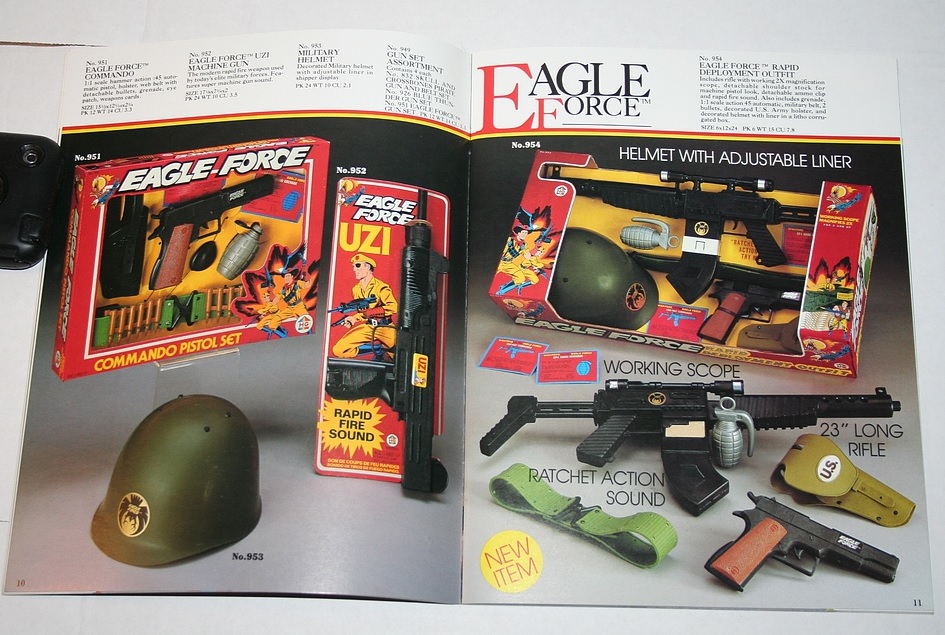 Eagle Force was an action figure line released by Mego in 1982, the same year G.I. Joe: A Real American Hero premiered. (I’ll delve into the two lines at some point, because it’s clear that Hasbro ripped off some of Mego’s designs). Mego shut down operations in 1982, and Eagle Force was done, so it’s curious to see the name still being used in ’84.