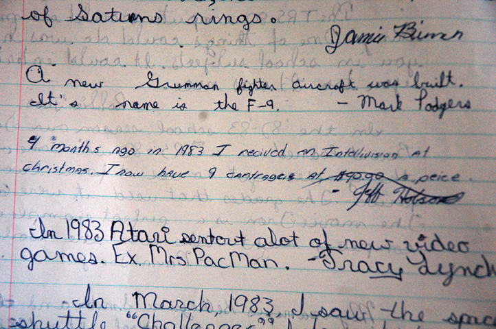 The capsule was sealed in 1983 and released in 2006. The photos are via Mike Bouchard, who was in the class that wrote the notes.