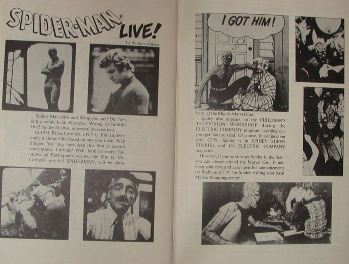 Select pages only. The Bruce Cardozo Spider-Man film mentioned in the third photo is not available anywhere, but the earliest known Spidey fan film, produced by Don Glut in 1969, is here. Glut went on to write for the animated Spider-Man (1981-1982), Spider-Man and His Amazing Friends (1981-1983), and The Transformers animated series (1984-1986).