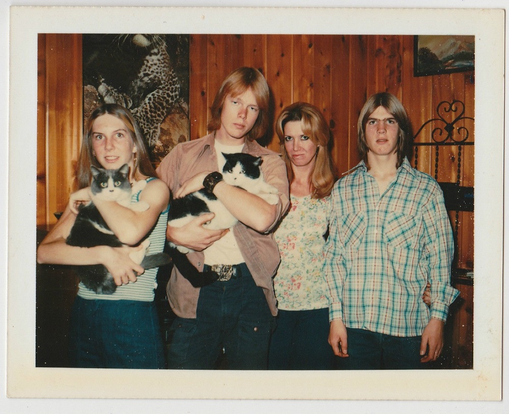 Creepy 1970s Family Posing with Giant Photo of Baby Leopard (and Cats)