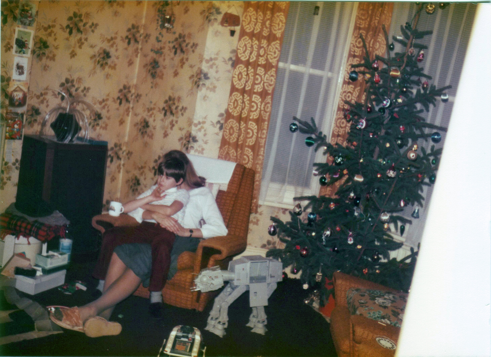 Daniel Baker, you are one lucky kid. I arranged the shots in what I think is consecutive order. First, we see the massive AT-AT box unwrapped. Second, dad works diligently to assemble AT-AT while kids opens the Big Trak. Third, kid puts finishing touches on the Walker as assorted Star Wars figures look on. Fourth, the Big Trak (the separately sold Transporter is in the foreground) goes for a pre-programmed spin. Fifth, kid sits on mom’s lap, admiring his toy domain, exhausted by happiness.