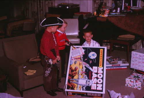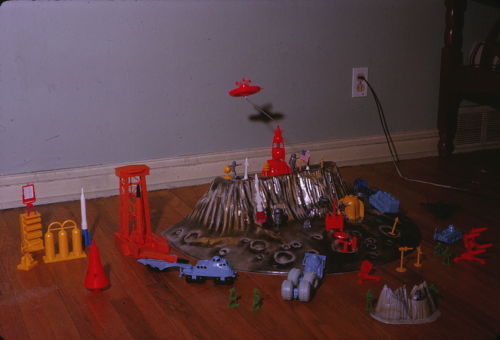 Found photos of a very influential Marx set I talked about in a different Christmas morning shot. There were space exploration-themed playsets before Operation Moon Base, but this is the one that stuck. Molds from Moon Base would be re-used in different Marx sets (including 1979’s Galaxy Command) for nearly 20 years.