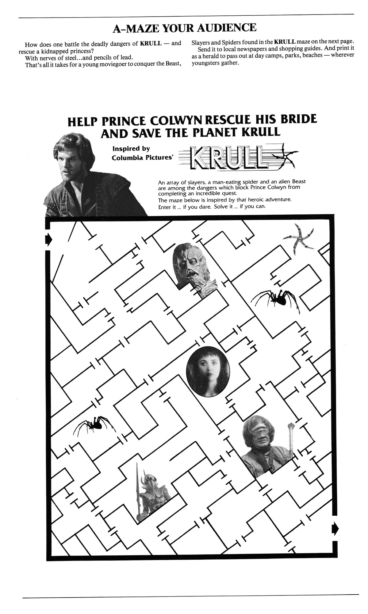 “A-Maze Your Audience”; “Eye Saw Krull”; “The Krullering Contest.” Oh, 1983, you silly, wonderful year.