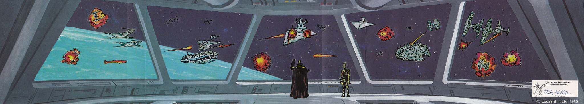 More exquisite scans from Mikey Walters. Don’t miss the enlargeable finished (and signed!) product beneath each of the front covers. There were seven sets total for The Empire Strikes Back. We’re missing Dagobah Bog Planet and Ice Planet Hoth.