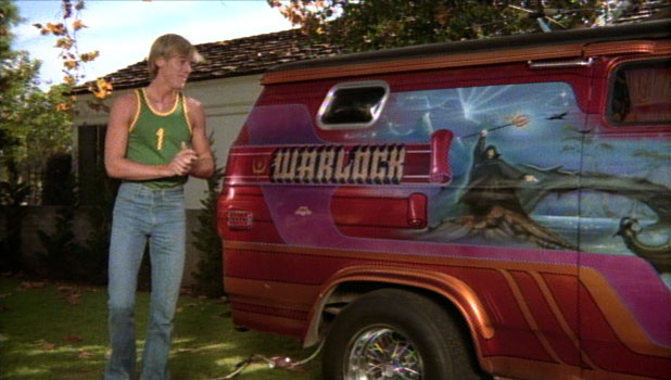 The van was built by Gene Gamet, Terry Dodge, and Gary Glenn in Michigan in 1975, and Glenn, an airbrush legend, handled the paint job. Soon thereafter Gary took the van to Southern California, where it became a car show hero and one of the most famous custom vans in the country. Here it is in Rock ‘n’ Roll High School (1979):