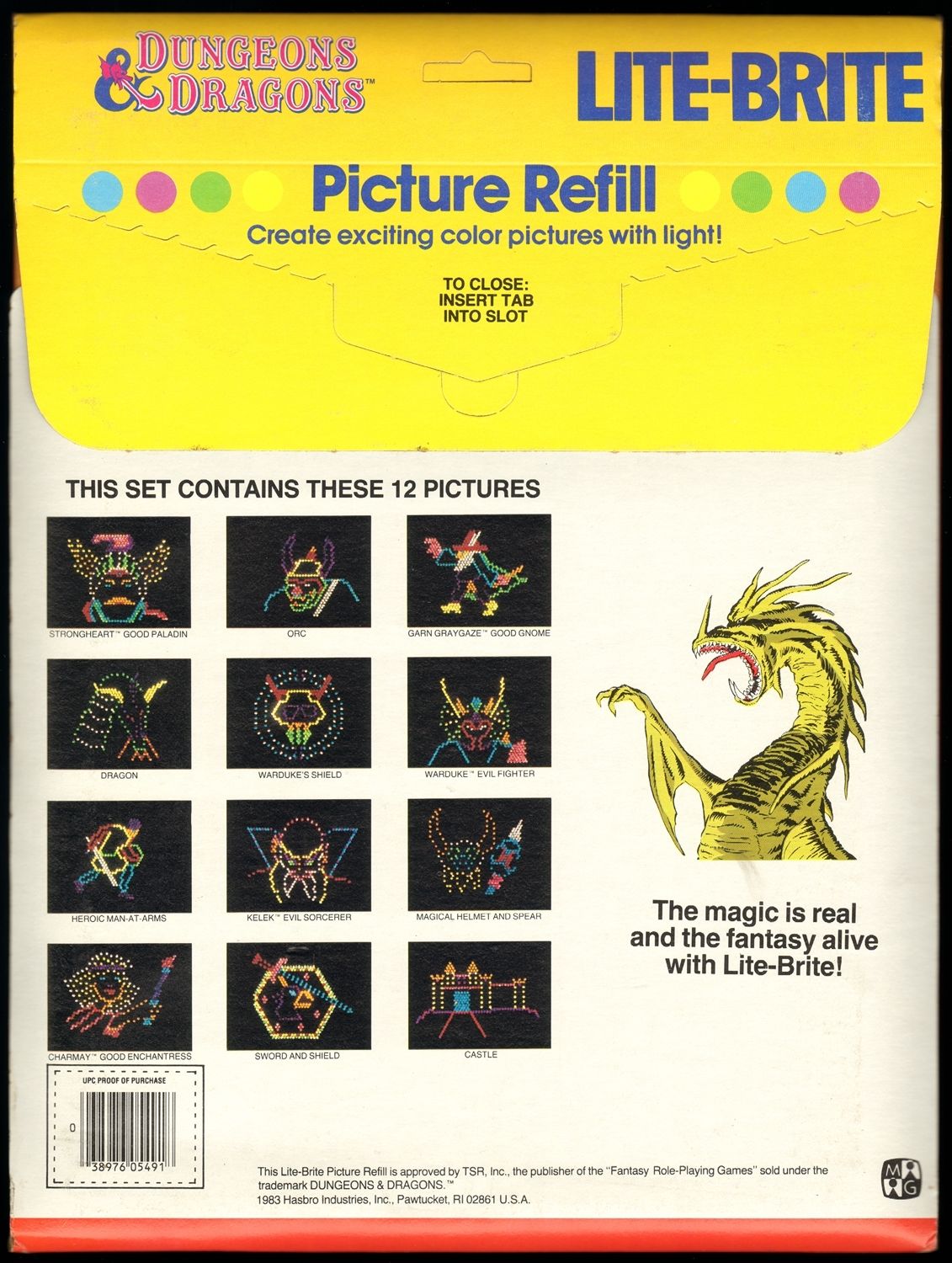 7 Responses to “<em>Dungeons & Dragons</em> Lite-Brite Picture Refill (Hasbro, 1984)”