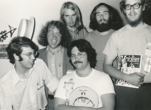 I can’t find any info on the fanzine the Chairman (far right) is holding. The first San Diego Comic-Con was held in 1970. Photos from the 1973 SDCC are here.