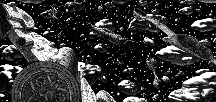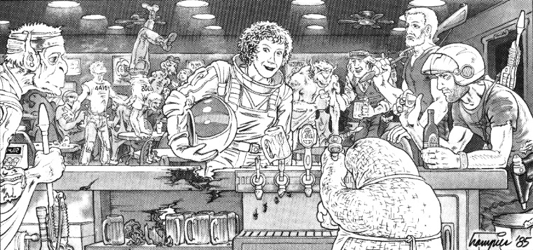 Tramp is rightly famous for his early AD&D work, but in my opinion his interior art for the Star Frontiers modules Mutiny on the Eleanor Moraes (1984) and The War Machine (1985) is just as good or better. You can see a few examples below courtesy of starfrontiers.com, an excellent resource and history site. Go there to browse the whole modules.