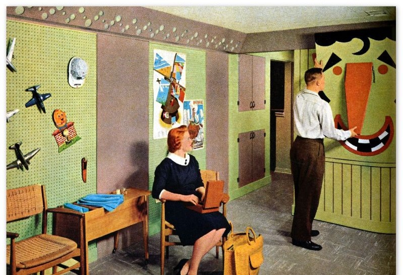 We live in an old house (built in the ’30s). I actually met the original owner of the house who’d lived there since 1940 (sadly she passed on 3 years ago). These pics reminded me of our conversation about the house and how she’d tried so hard to “keep up with the times,” integrating “modern” decor when it was in vogue (i.e., interior wood paneling, etc.). In our den we have an original pot belly chimney (I also like to call it a Darth Vader chimney) exactly like the one shown in the last pic.