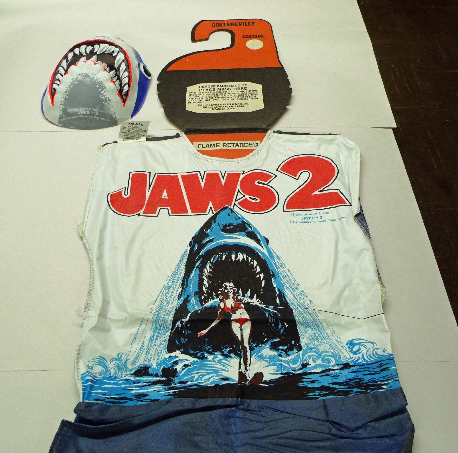 There were at least two Jaws costumes released by Collegeville, as seen above via Babble and Plaid Stallions. There were also minor variations on each design such as different colored pants, etc. The Jaws 2 costume is below. The mask is the same.