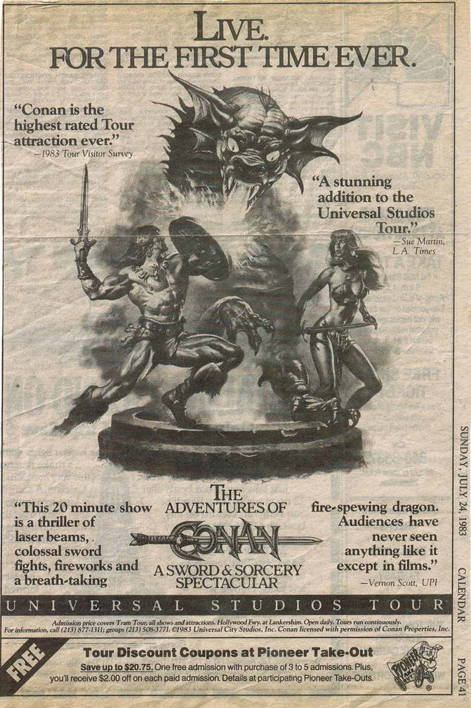 The Universal Studios attraction was a “$3.75 million production featuring state-of-the-art, never-before-seen laser and pyrotechnic special effects, combined with the skills of actors, magical illusions and computer-coordinated animated characters.” I never got to see it, sadly. I went to Universal Studios once or twice, before 1983, and remember only the Jaws and Battlestar Galactica rides.
