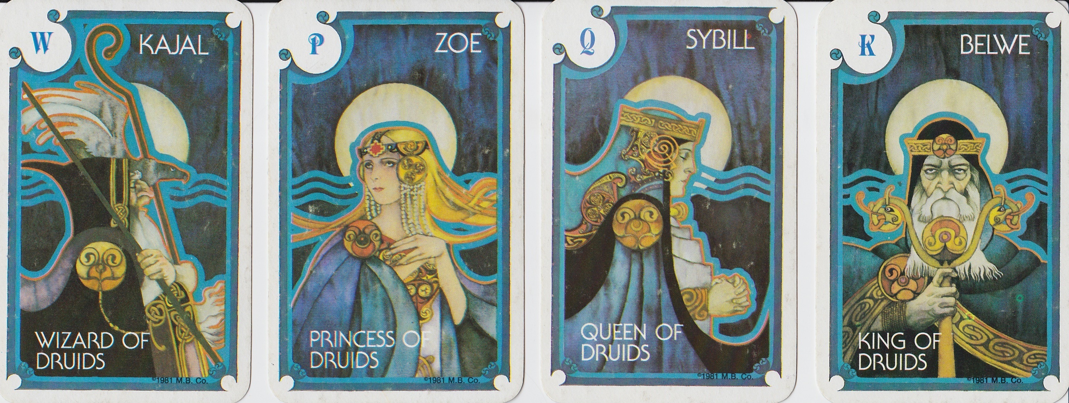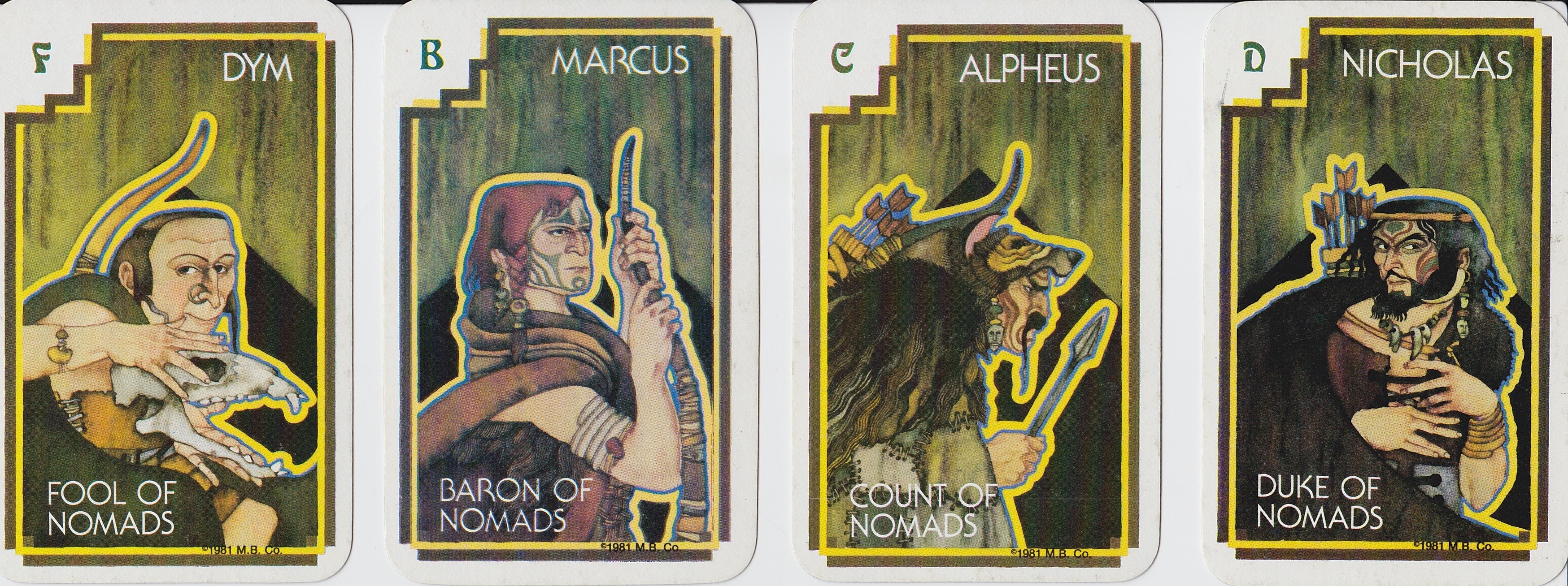 Dragonmaster is a straightforward, trick-taking card game with a sword and sorcery theme. What makes it interesting is the spectacular art, which resembles that of another, better known Milton Bradley game from the same year, Dark Tower. Here’s a shot of the different screens in Dark Tower for comparison:
