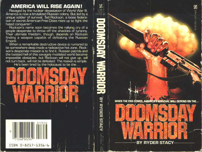 The cover images come from two great blogs: The Post-Apocalyptic Book List, an exhaustive list and description of genre titles, and Glorious Trash, a pulp review site heavy on 1980s survivalism and action-adventure, Doomsday Warrior included.