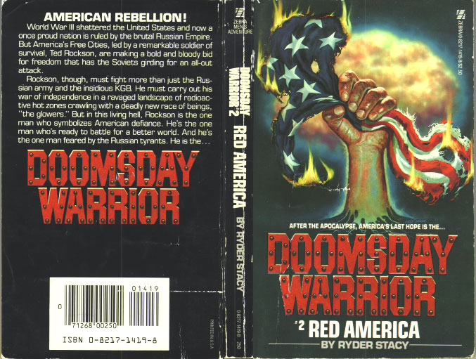 A combination of The Survivalist, The Executioner, and 2000 AD, the Doomsday Warrior series follows the exploits of Ted Rockson (“Rockhard” would’ve been better) and “his high-tech guerilla army of Freefighters” as they try to wrest America from Russian occupation while battling radioactive “glowers,” cultists, and all manner of post-nuke nasties.