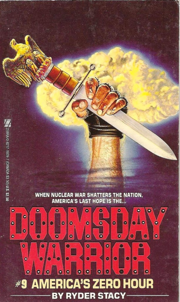 Ryder Stacy is actually Ryder Syvertsen and Jan Stacy, both of whom wrote various men’s action-adventure fiction throughout the 1980s. Doomsday Warrior was the most successful, running to 19 volumes. There were an incredible amount of post-apocalyptic books and book series written during the Reagan era, including popular young adult novels like Gloria Miklowitz’s After the Bomb. The Hunger Games is nothing new, and it’s tame by comparison.