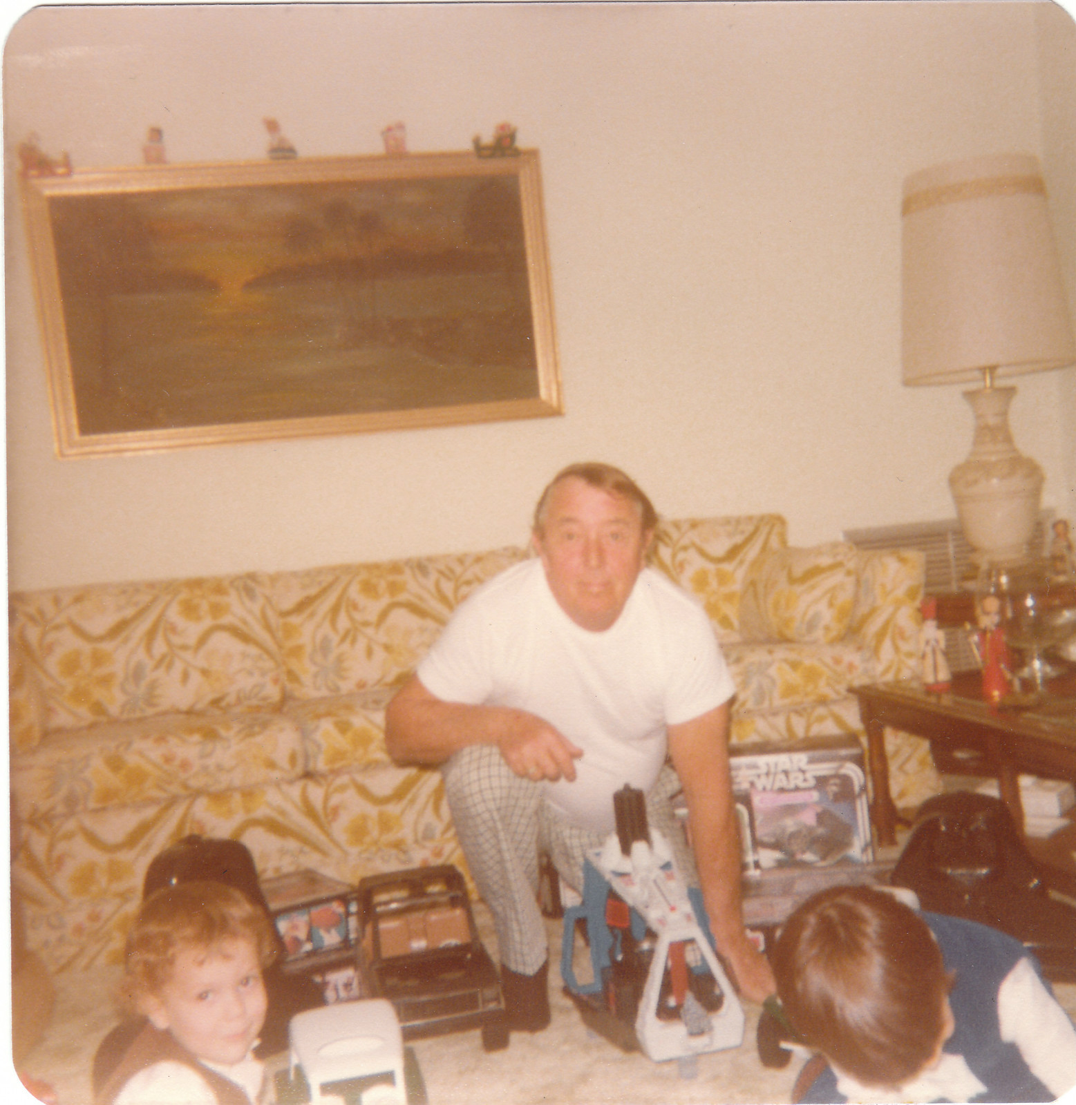 Let’s kick off the Christmas season with some giant, exceedingly dangerous robot toys, shall we? John Reese—snug in his Snoopy shirt, maroon cords, and Adidas casuals—is showing off Great Mazinga. Lots of orange shag carpeting. Lots of wood. Bucolic painting hanging over the floral print couch. Possibly an urn filled with somebody’s ashes next to the lamp.