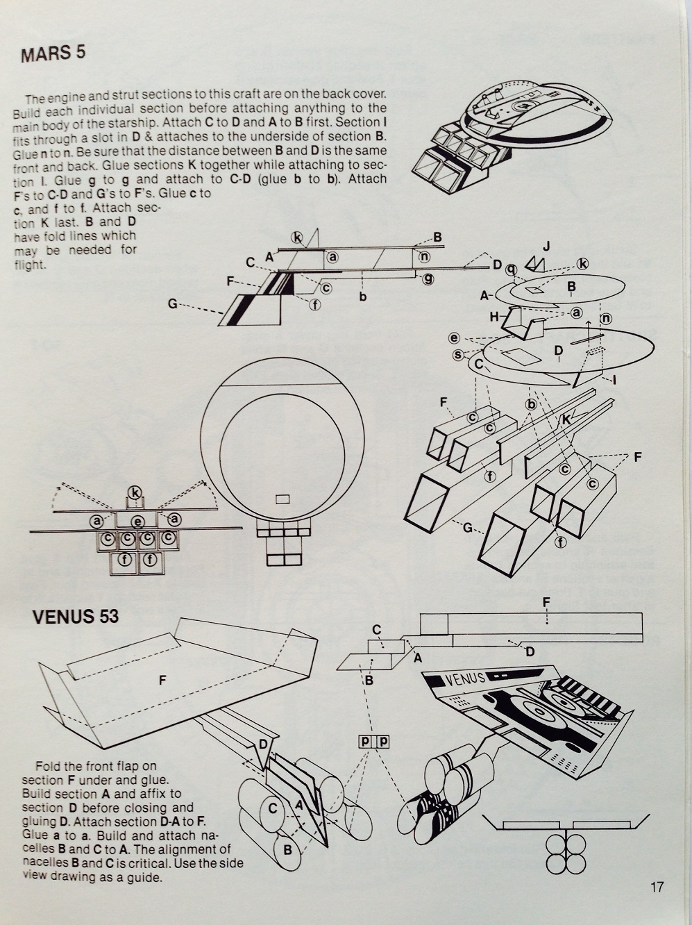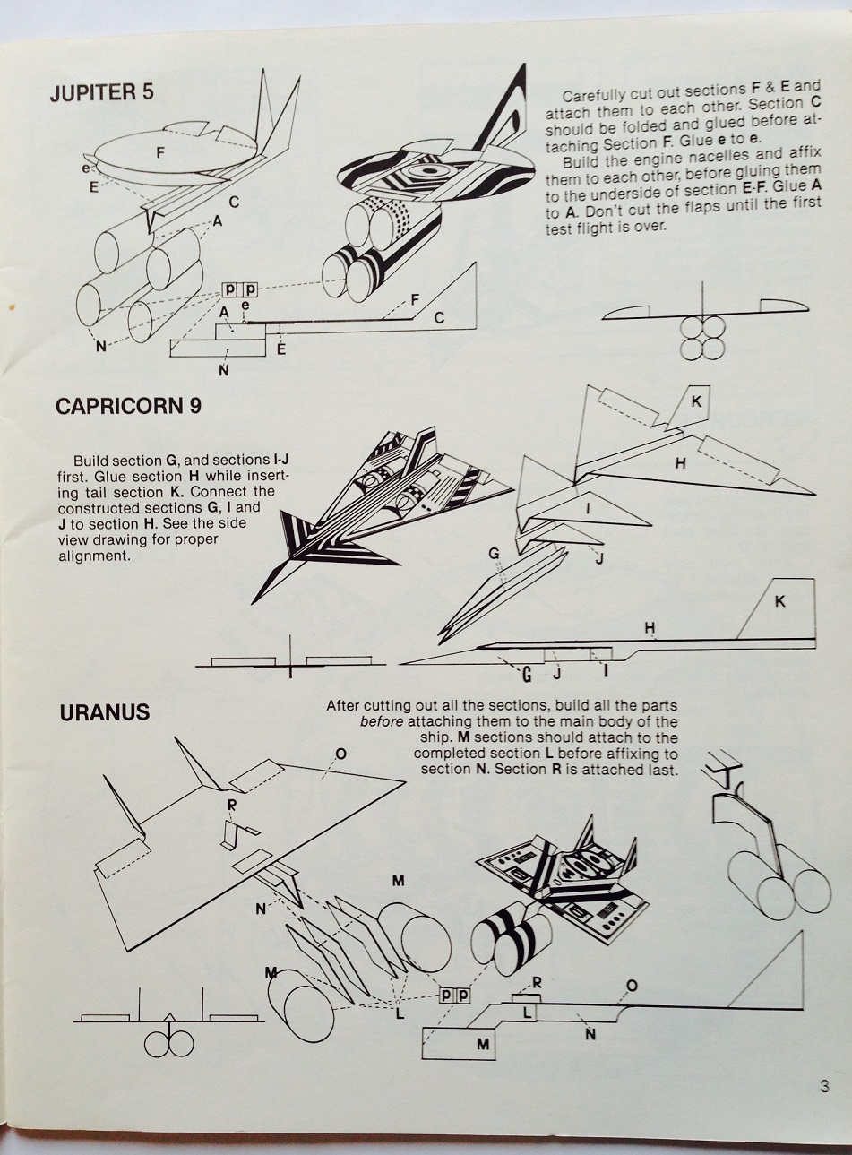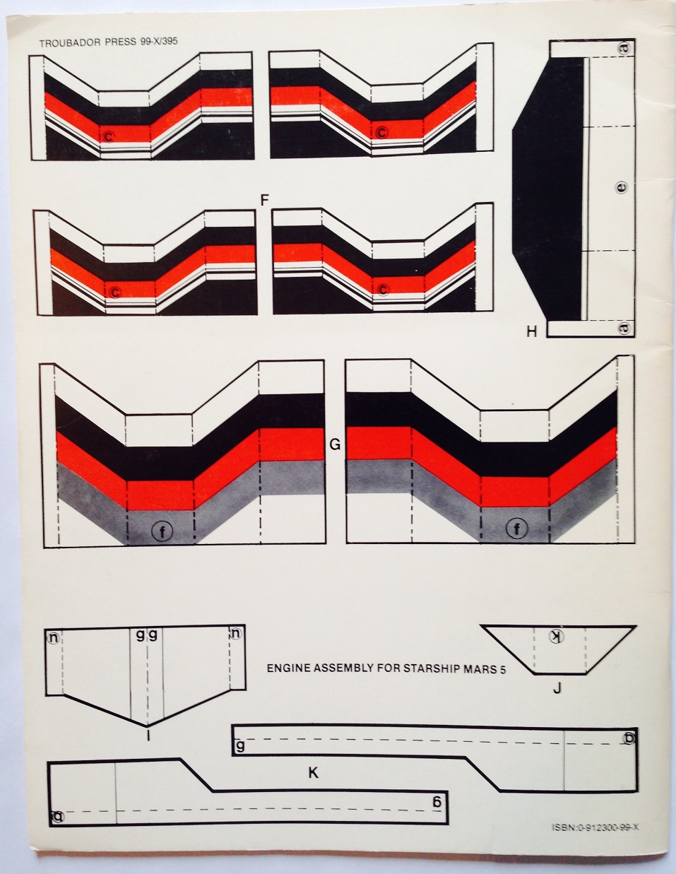 WHYTE: The robot/spaceship books of the late ’70s were indeed a response to the great success of Star Wars, Star Trek (TV & movies), Battlestar Galactica, etc., but were also launched with the on-going success behind them of our best-selling Paper Airplanes book (1974), with dazzling Art Deco designs by Marc Arceneaux. We were fortunate to find a charming Korean artist, Yoong Bae, to create the many flying models. Asked if the robots would actually fly, he’d say with a twinkle: “They make good fry.”