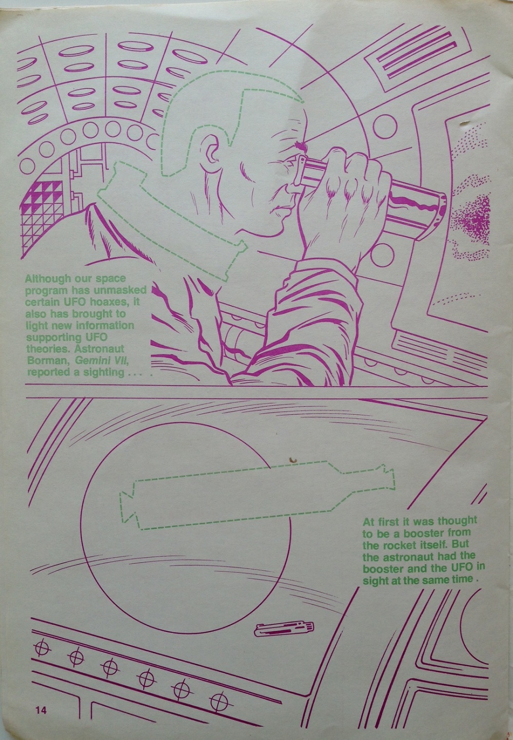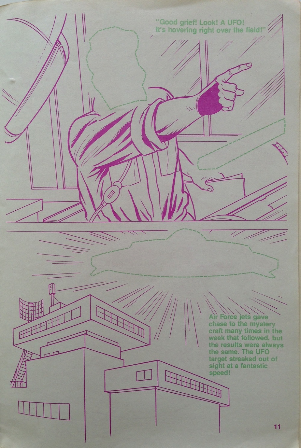 Published April 7, 2014 Coloring/Activity Books , Sci-Fi/Space Art , UFOs 1 CommentAlong with the sticker book, Whitman published two coloring books in 1978: UFO Seeing is Believing and UFO Space Strangers. There was also a comic book series the same year, UFO & Outer Space, reprinting select issues of the long-running 1968 series UFO Flying Saucers.