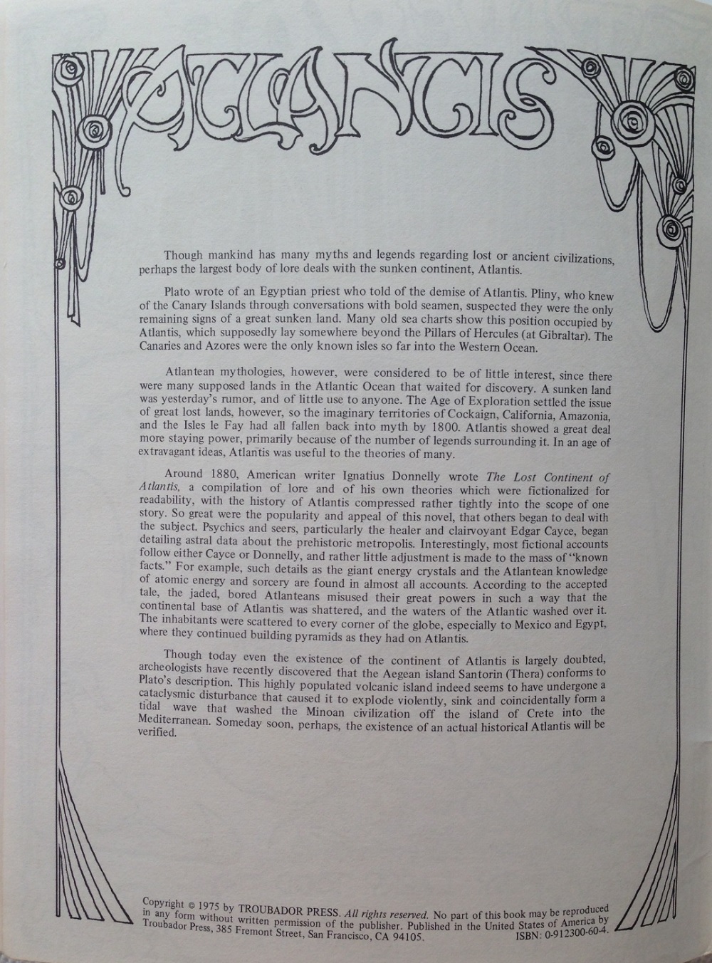 Whyte, deeply influenced by twentieth century graphic art, particularly the underground comix of the late ’60s, hired many brilliant artists, emerging and established, ingeniously matching their unique styles to one or more of his lofty subjects. In retrospect, Troubador Press acted as a kind of conduit through which kids of the ’70s and ’80s were exposed to the styles and attitudes of the ’60s. It turned out that both “hippies” and “geeks” shared a kinship with all things fantastic, epic, idealistic, intellectual, and iconoclastic.