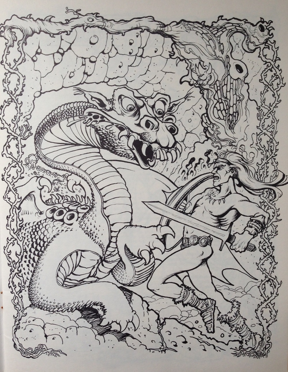 My youngest son, Andrew, had been playing D&D for a couple of years with his friends. When I suggested to the owner of our favorite local toy store that I might do a coloring book based on the game, he shouted, “You’ve got to do it!” I’m usually uncomfortable making “cold calls,” but when I found out the inventor, Gary Gygax, lived in Wisconsin, I felt a little more at ease: I was from Wisconsin, so we had that in common. I pitched the book idea to Gygax, suggesting that we’d get the game into markets he didn’t already have, namely gift and book stores. That made sense to him. He agreed not only to license his concept to Troubador and write profiles of each of the creatures in the book, but he even invented a unique game for it. We had to call the book The Official Advanced Dungeons & Dragons Coloring Album because Gygax was having a dispute with a partner about who owned what, but Gygax owned the exclusive right and title to the “Advanced” format.