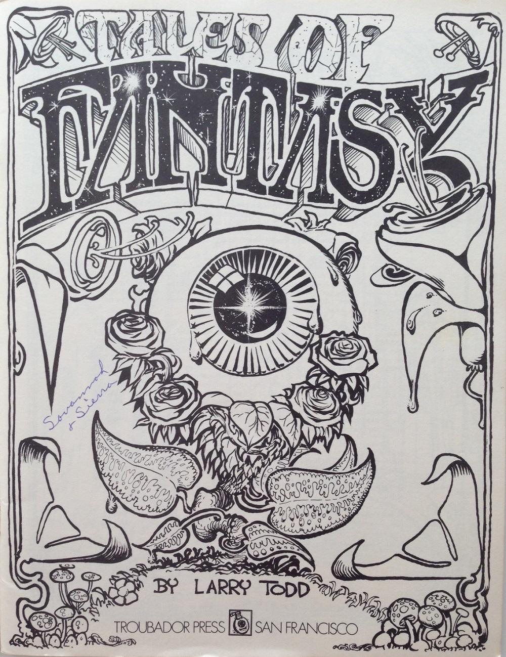Tales of Fantasy was my idea. I wanted to round out a trilogy—a fantasy trilogy—that started with Monster Gallery (1973) and included Science Fiction Anthology (1974). All three books were then marketed as a set: if someone had one of the books, he must have the other two. I was also interested in having some of the underground cartoonists illustrate Troubador books. I knew of Larry Todd’s interest in science fiction from the underground comix he wrote for and especially his wonderful Dr. Atomic character, and signed him up for Tales of Fantasy.