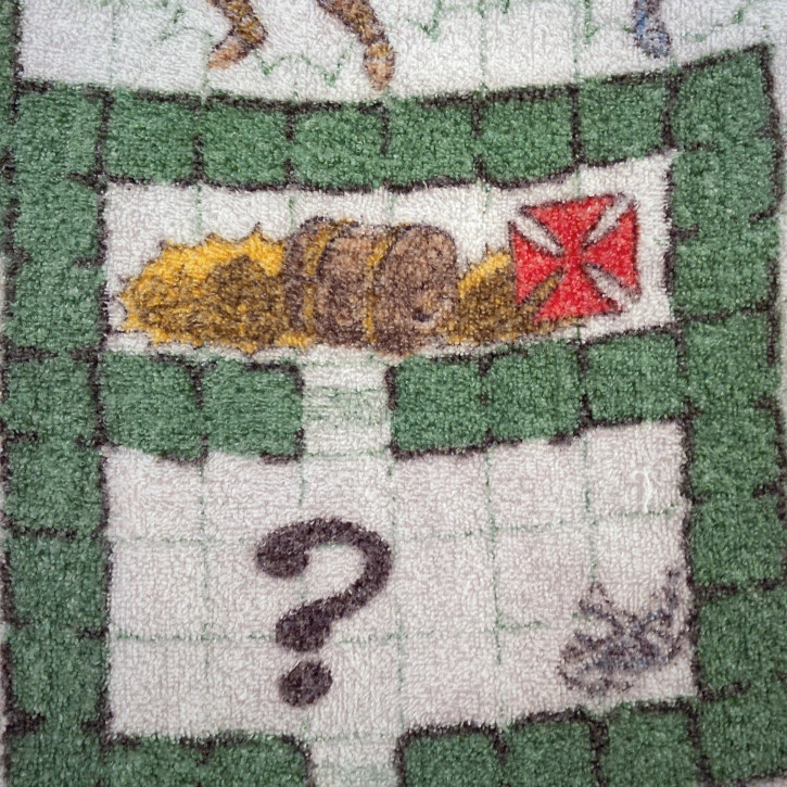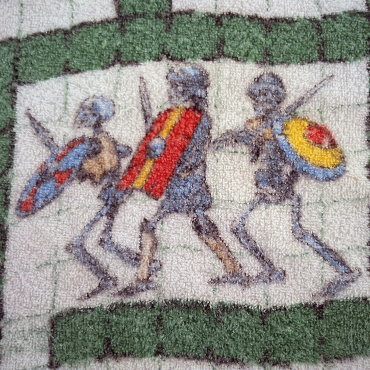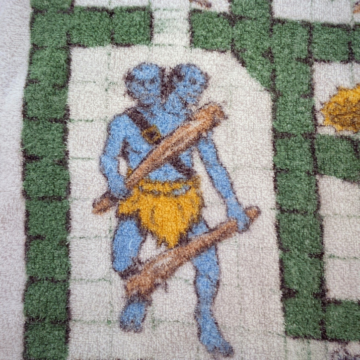 UPDATE (6/30/14): The righteous “Mr. D.” sent in these detailed views of the dungeon crawl towel seen above. Great stuff.