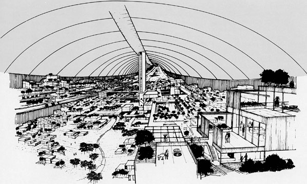 As I was searching eBay for all the Ray Bradbury books I read as a kid and somehow lost, I discovered this little gem, for which Bradbury provides an introduction. In 1969, Princeton physics professor Gerald O’Neill, “concerned over student disenchantment with science and engineering,” started seriously discussing space colonization with his brightest freshman students. He asked them, “Is the surface of a planet really the right place for an expanding technological civilization?” After much back and forth about atmosphere and energy requirements, “They concluded that the surface of a planet was not the best place for a technical civilization. The best places looked like new, artificial bodies in space, or inside-out planets.”