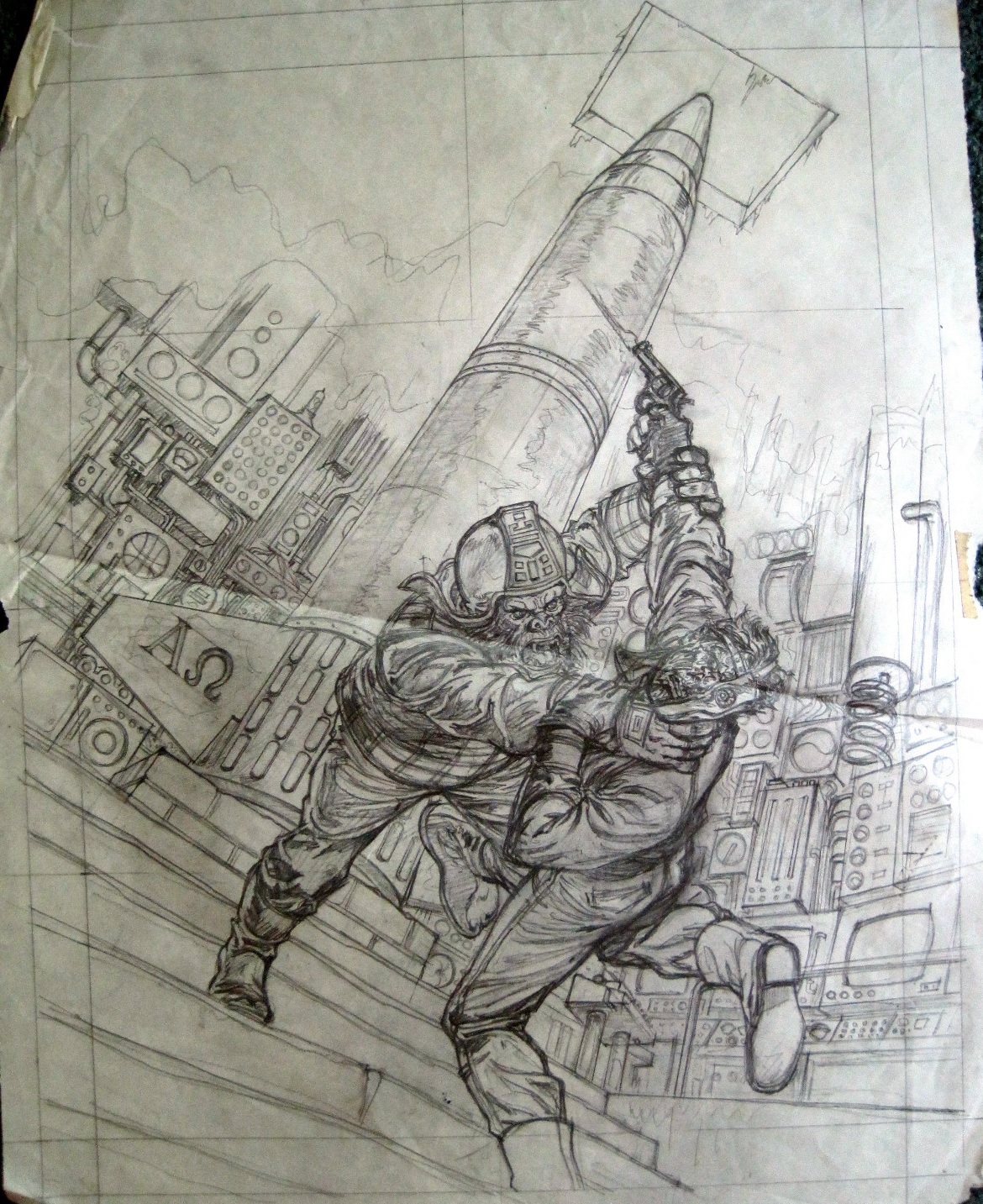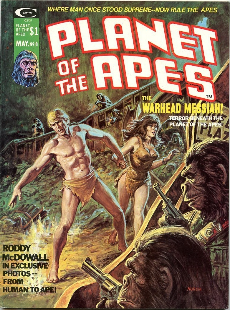 Published November 5, 2013 Comic Books , Curtis Magazines , Earl Norem , Make Mine Marvel , Planet of the Apes Leave a CommentMany of Earl Norem’s original pencils and paintings, from the ’60s through the ’90s, are popping up on eBay. (The original pencils for Planet of the Apes #28 went for over $1000.) A lot of it is in pretty rough shape—multiple folds, tattering, yellowing. Illustration was a tough gig, and artists had to crank out page after page of quality work to make a living. Even for Norem, who was well established by this point, there was no time for sentimentality. It was all business.