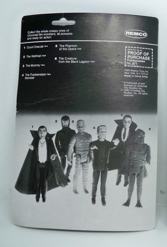 I’m not sure what convinced Remco that Universal Monsters were going to compete in 1980, when a little movie called The Empire Strikes Back came out and the horror genre was dominated by ultraviolent slashers and demons from hell, but I’m glad they did: regardless of how much money was lost, the Mini Monsters are some of the coolest action figures ever made. The cards are beautiful too. I love the glow in the dark graphic surrounding Frank and the Phantom on the versions seen here. The figures were first released in non-glow versions (the Creature was dark green).