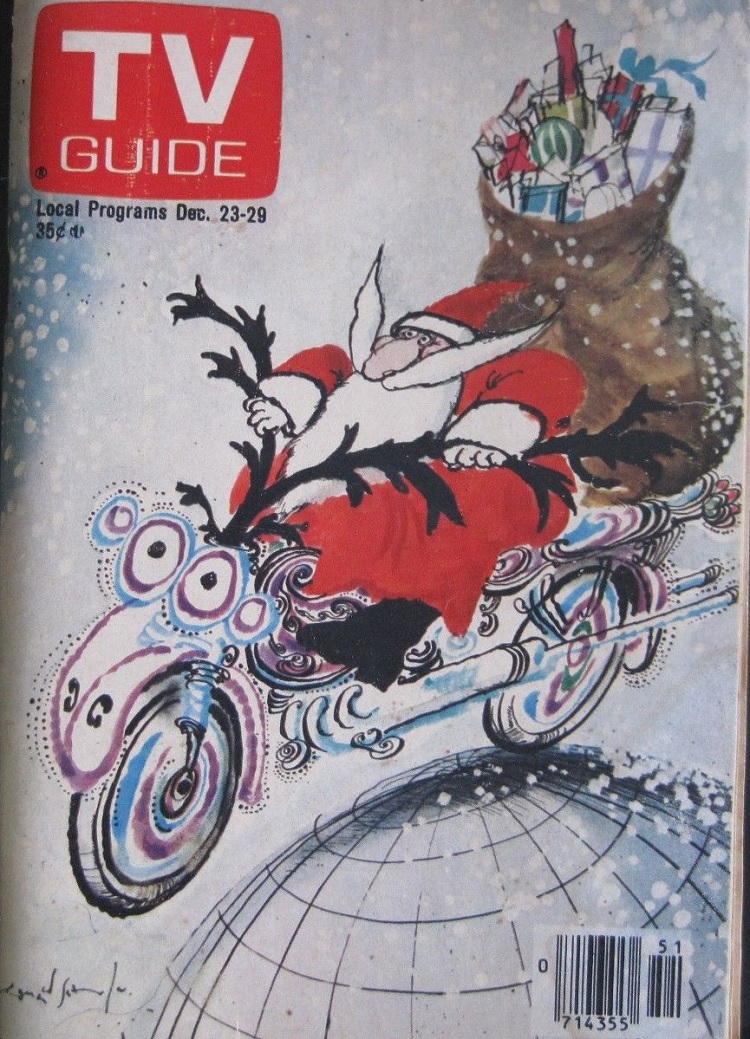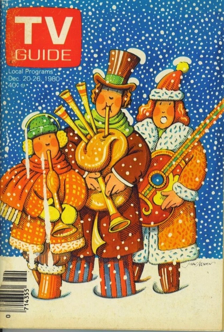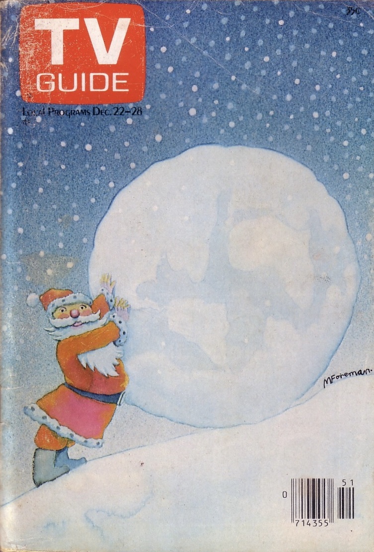 A convincing visual of America’s descent into political correctness, as noted by TV Guide Time Machine. After 1985, there were no more Christmas covers, only Holiday Viewing Guides.